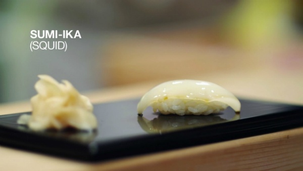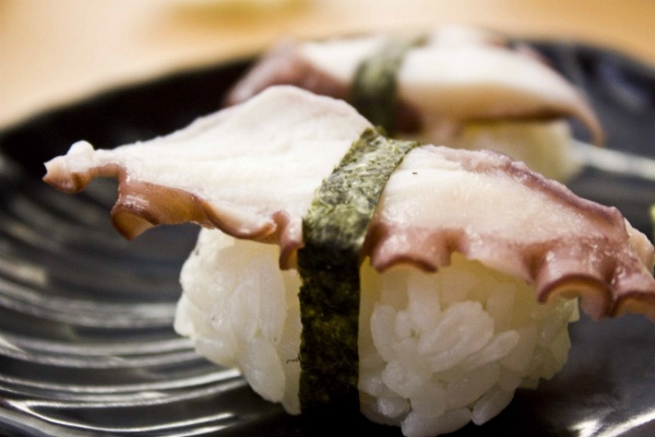 Được xoa bóp, massage bởi đôi bàn tay tinh tế của Jiro trong khoảng 50 phút trước khi được phục vụ, miếng sushi bạch tuộc có độ dai, giòn mà rất tươi mới khi được dùng với một chút muối đi kèm. Nhưng hãy lưu ý là món sushi này không được dùng với xì dầu, đó là lời khuyên của những đầu bếp đại tài nơi đây.