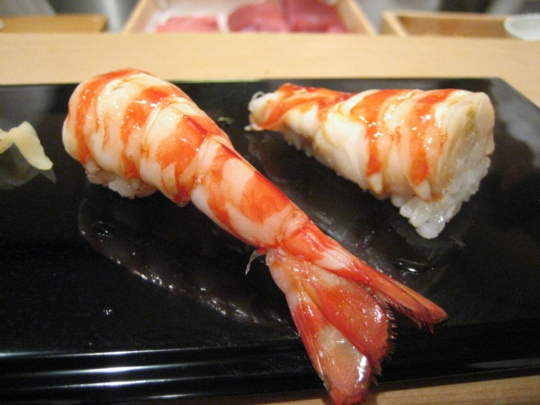 Món sushi này được kết hợp với hai phần đầu và đuôi của một con tôm, khi thưởng thức món ăn thực khách không chỉ tận hưởng mùi thơm và vị ngọt của thịt tôm mà còn thưởng ngoạn màu sắc của “tác phẩm nghệ thuật” này.