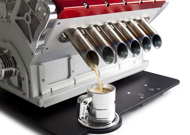 | Máy pha cafe đặc biệt này có cấu tạo và vật liệu tương tự động cơ V12 trên xe đua F1. Món quà đặc biệt này nặng tới 23 kg và được bán với giá gần 9.000 bảng Anh, đắt ngang một chiếc xe hơi mới hạng nhỏ. |