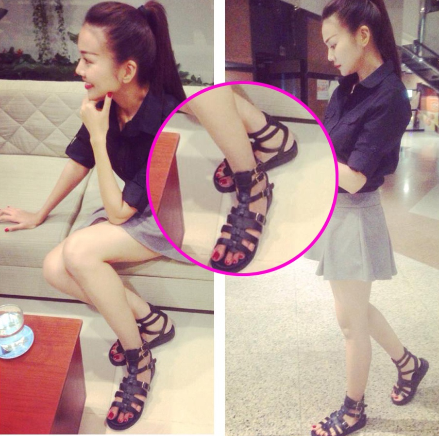 Giày sandals chiến binh: Sandals lấy cảm hứng từ phong cách của những chiến binh Hy Lạp hoặc Roma là một xu hướng được duy trì trong năm 2015. Thanh Hằng cũng là một tín đồ chuộng trào lưu này.