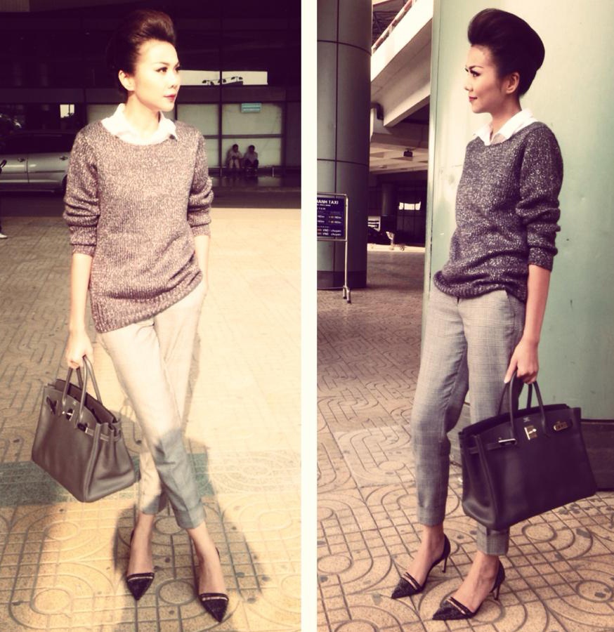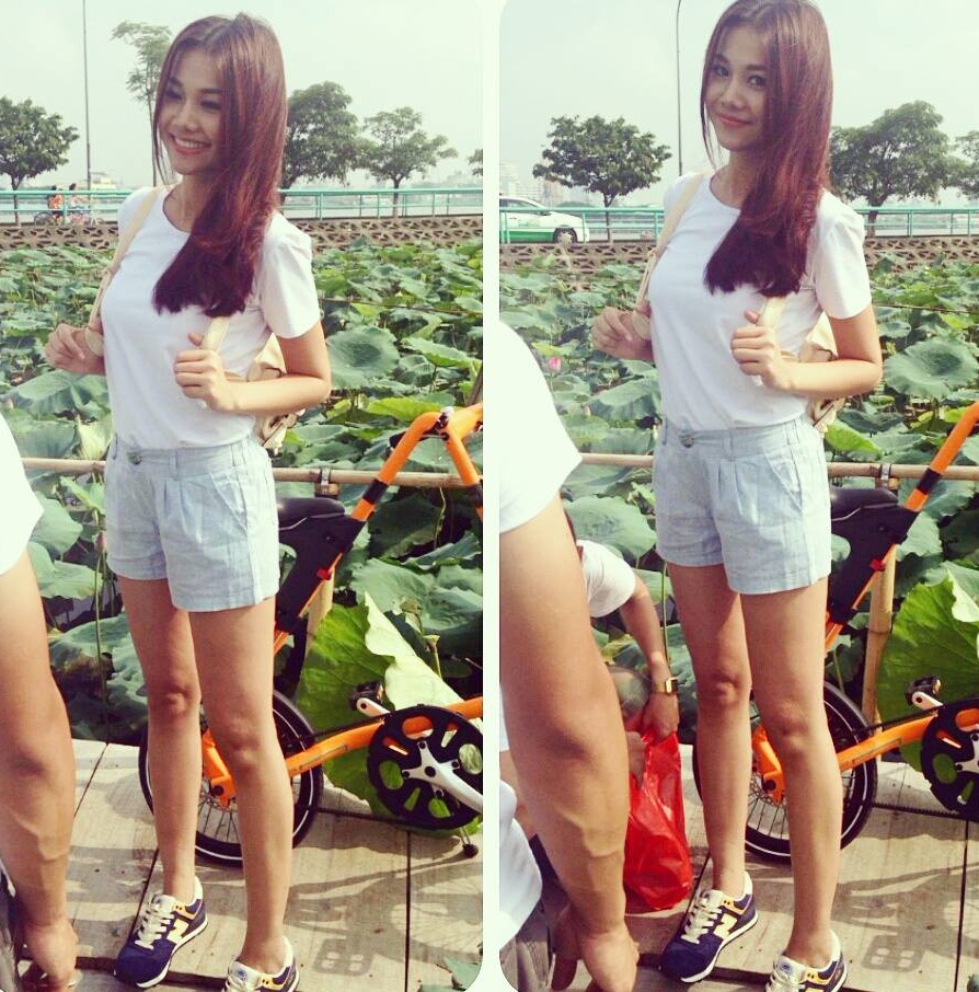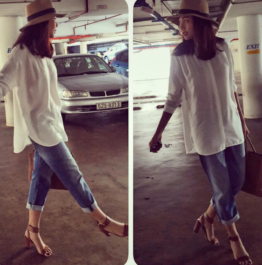| Vẻ hiện đại, phong cách tomboy thường thấy ở Thanh Hằng gắn liền với những đôi giày thể thao màu trơn. Tông màu giày và trang phục luôn được người đẹp chọn lựa kỹ càng. |