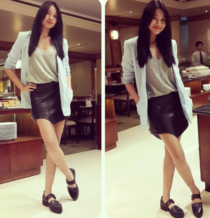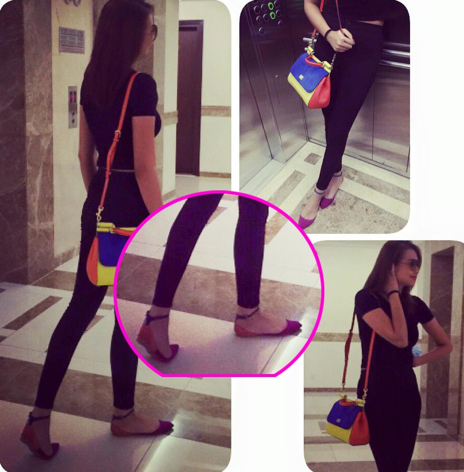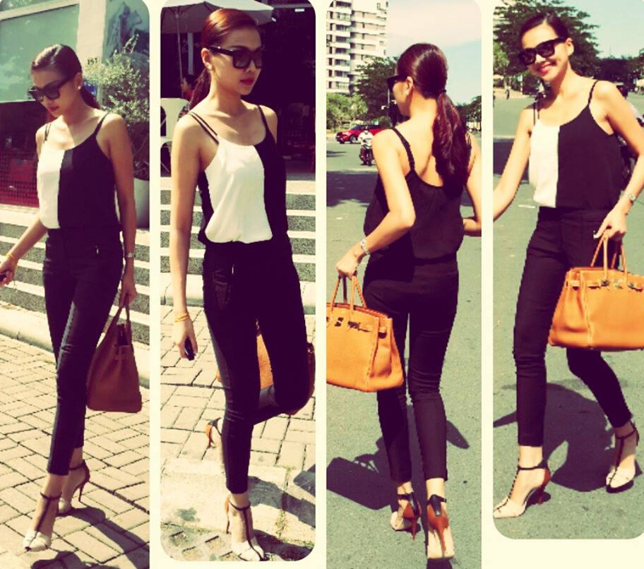 Giày đế bệt: Giày đế bệt luôn tồn tại ở các thời đại dù song song luôn có những phong cách khác ra đời. Kiểu giày búp bê hai màu của siêu mẫu được dự đoán sẽ trở thành xu hướng hot ở mùa hè năm nay. Thanh Hằng có cách mix tinh tế, giày và túi đồng màu, trang phục gam trầm làm nổi bật phụ kiện đi kèm.