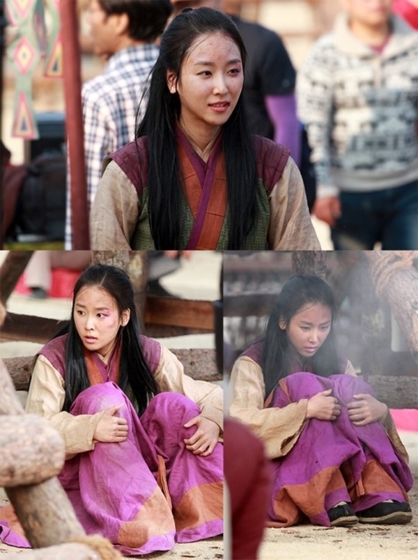 | Người đẹp Seo Hyun Jin trong một cảnh quay quần áo luộm thuộm, gương mặt bị thâm tím một bên của bộ phim truyền hình The Daughter of the Emperor mà cô đang đóng vai chính Soo Baek-hyang, con gái của vị vua Moo Ryung. |