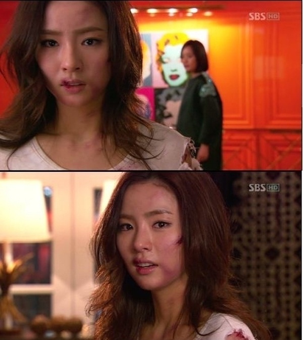| Kiều nữ 9x Shin Se Kyung và gương mặt thâm tím, váy rách tả tơi trong một cảnh quay của phim bộ phim gây tranh cãi Fashion King. Ở cuối phim, nhân vật nhà thiết kế nghèo của Se Kyung bị sát hại. |