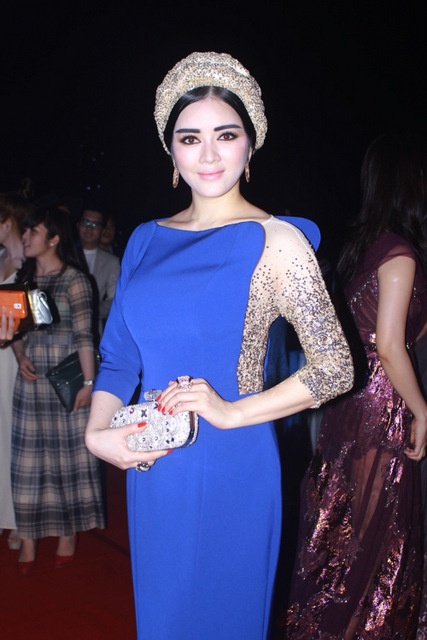 Bộ cánh hàng hiệu sang trọng của Lý Nhã Kỳ bị phá hỏng bởi lối trang điểm đậm, khiến gương mặt cựu Đại sứ du lịch trông khá dữ dằn. Phụ kiện mũ ánh kim đội khó hiểu và không phù hợp với tổng thể chung.