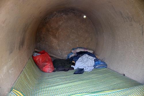 | Chiếc ống cống nơi ở của chú Nguyễn Hữu Định - Ảnh: Tuấn Mark. |