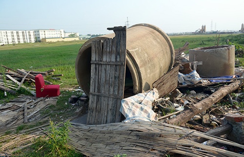 | Nơi ở được che chắn tạm bợ, năm chơ vỡ giữa một khu đất trống - Ảnh: Tuấn Mark. |