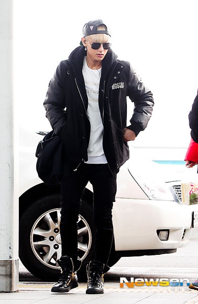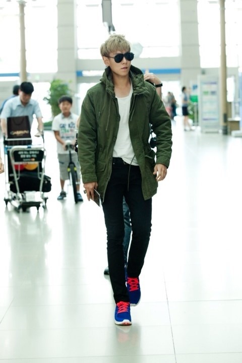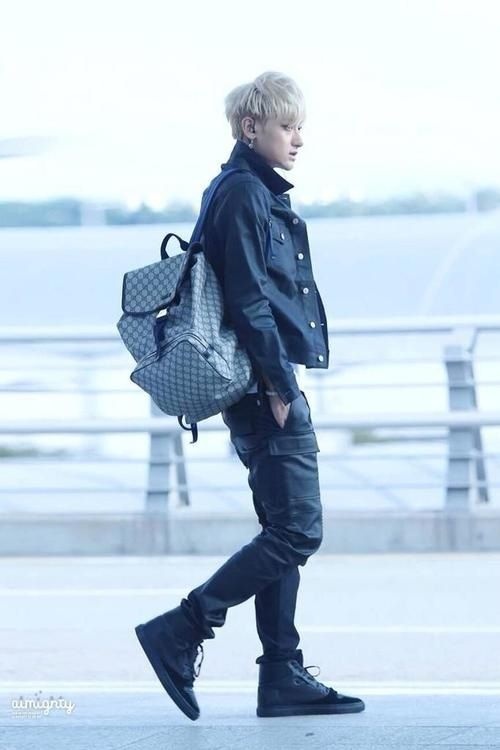 | Mạnh mẽ, khỏe khoắn là phong cách dễ thấy trong bất kỳ bộ trang phục sân bay nào của Tao (EXO). |