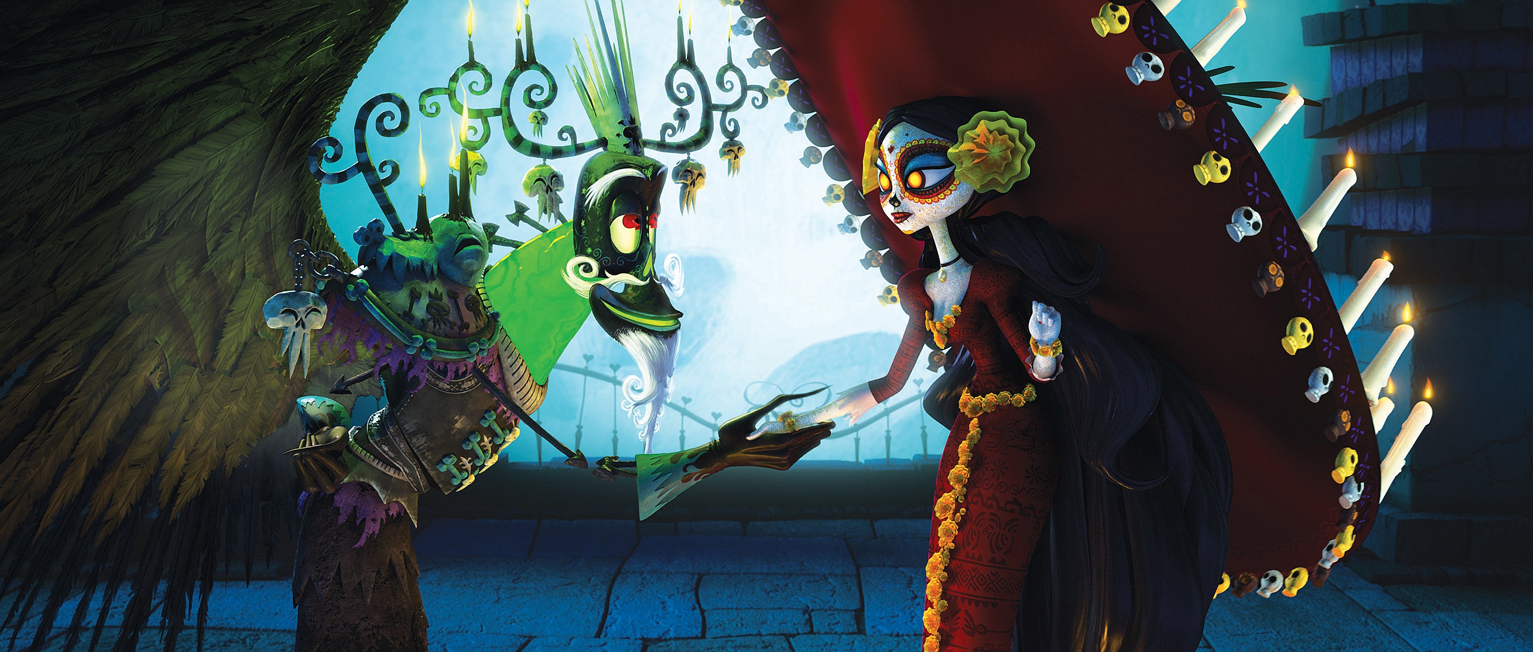 | The Book of Life (2014): “La Muerte” theo tiếng Tây Ban Nha nghĩa là thần chết. Cô nàng xinh đẹp quyến rũ này thực chất chỉ là bộ xương được tô màu kiểu cách, với những hoa văn và trang sức rực rỡ tương phản với gam màu tối của người chồng Xibalba. Cuộc phiêu lưu của mối tình tay ba giữa Manolo, Maria và Joaquin hẳn sẽ không xảy ra nếu không có sự tham gia của cặp đôi linh hồn thú vị này. |