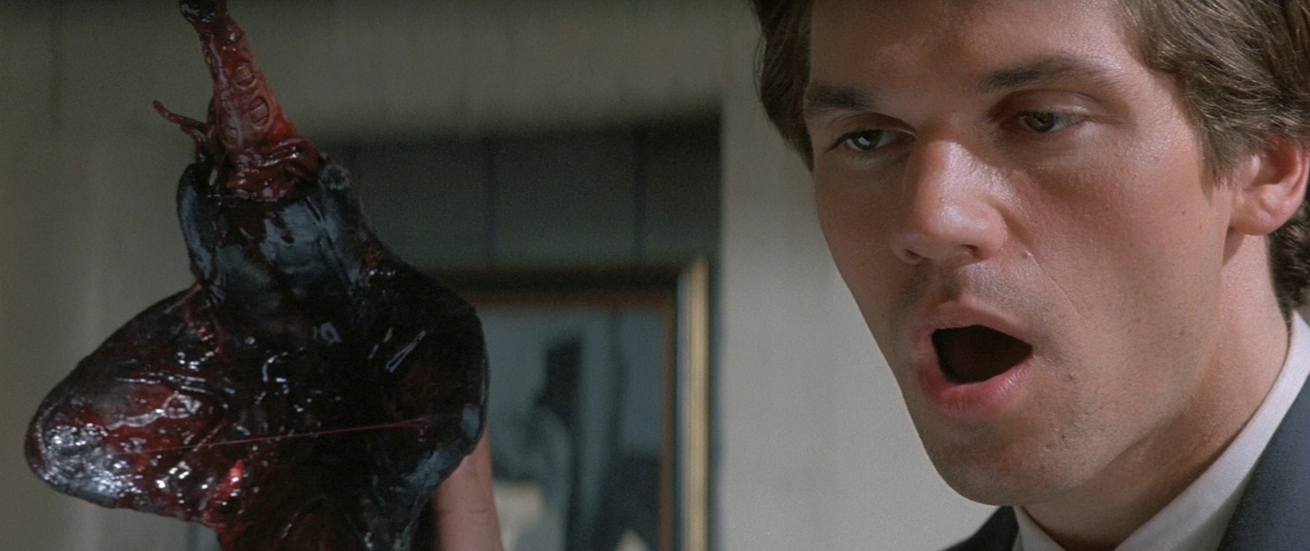 Alien (1979): Loài quái vật không gian không chỉ khiến người xem khiếp đảm với tạo hình khi trưởng thành mà còn gieo rắc nỗi sợ hãi với hình ảnh thuở sơ sinh, khi chúng còn nằm trong những quả trứng nhớp nhúa. Nó có chiếc đuôi dài nhằm cấy trứng ký sinh vào cơ thể sống khác. Hình ảnh con quái vật tí hon ngóc đầu ra ngọ nguậy giữa lồng ngực nhân vật Kane (William Hurt) chính là một trong những cảnh phim ghê rợn nhất lịch sử điện ảnh. |