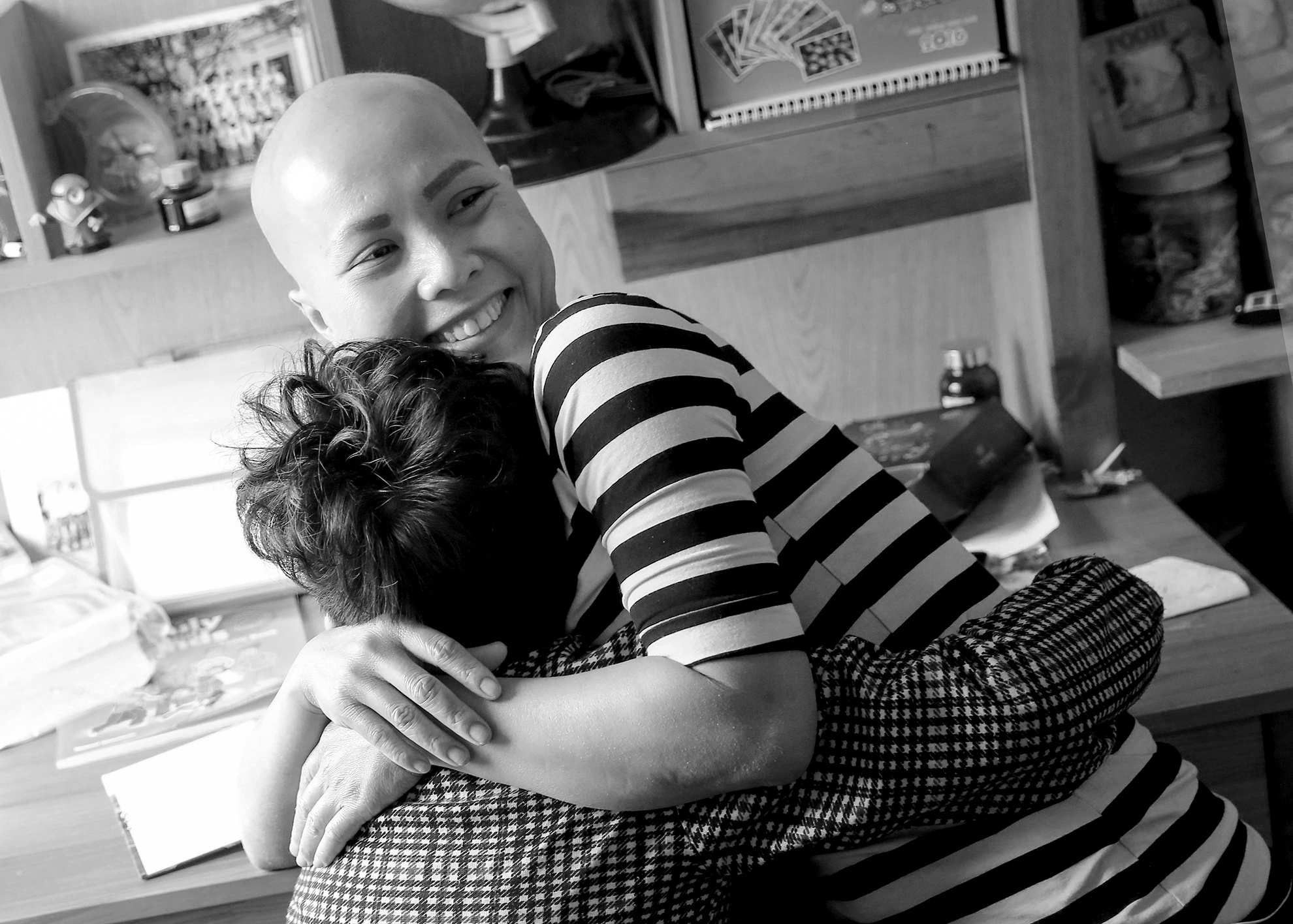 CUỘC SỐNG CỦA MẸ ĐƠN THÂN CHỐNG CHỌI UNG THƯ. Vừa bước qua tuổi 30 tươi đẹp chưa lâu, chị Bùi Thu Thủy bất ngờ đón nhận tin mình bị ung thư vú. Đến nay, chị đã phải trải qua 8 lần hóa trị, hiện trong giai đoạn dùng thuốc để ức chế hormon nữ. May mắn, Thủy có cậu con trai tuy mới 10 tuổi nhưng bé thấu hiểu được hết những tâm sự của người sinh ra mình. Cu Bốp biết chăm sóc mẹ, có thể làm được những việc nhỏ trong nhà, nấu các món ăn đơn giản. Với em, mẹ là người xinh đẹp nhất trên đời dù đã cạo đi mái tóc. Ảnh: Chí Toàn. (Xem thêm).