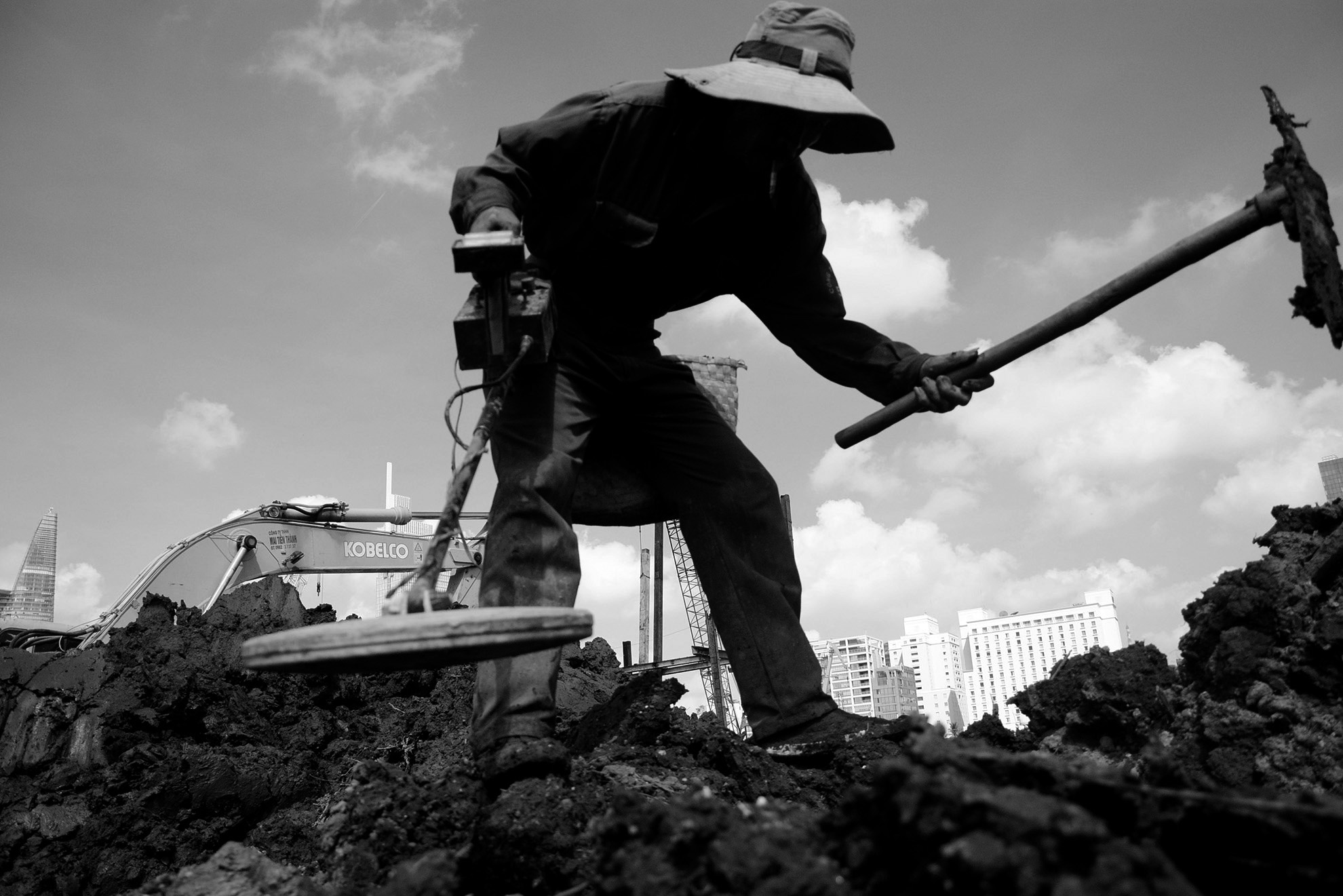 | NHỮNG NGƯỜI MÓT SẮT Ở KHU ĐÔ THỊ MỚI CỦA SÀI GÒN. Dự án khu đô thị mới Thủ Thiêm, quận 2, hiện vẫn tiếp tục giải toả và tiến hành thi công. Giữa đại công trình, nhiều căn nhà đã được tháo dỡ, do đó, các loại máy móc đào đất, xe ben liên tục đổ đất và để lại những mẩu sắt thép vụn, cũ. Từ đây xuất hiện nhiều người làm nghề mót sắt hàng ngày. Ảnh: Lê Quân. (Xem thêm). |