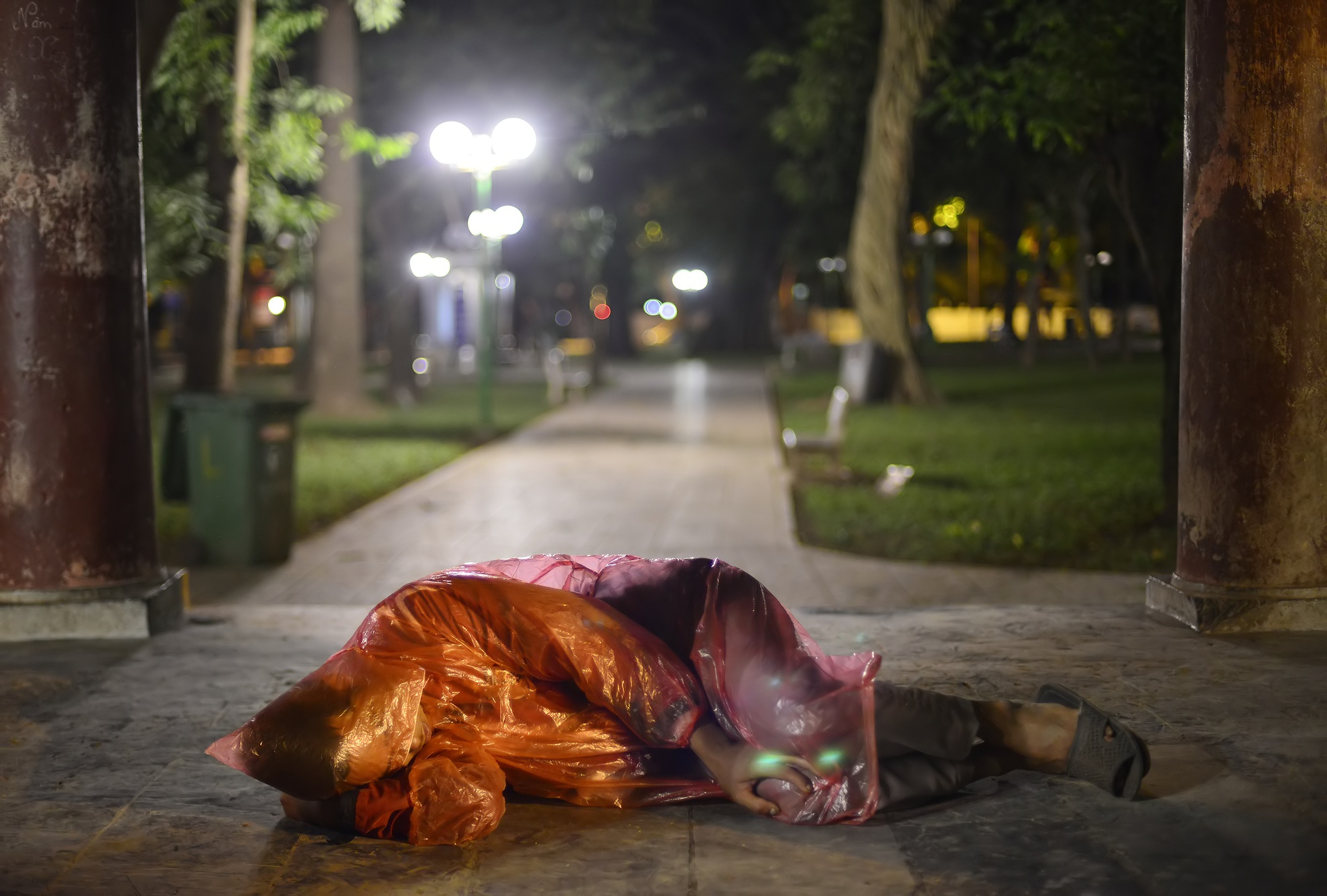 | CẢNH ĐỜI KHÔNG NHÀ CỬA TRONG ĐÊM ĐÔNG GIÁ LẠNH. Tại công viên Lê Nin gần phố Điện Biên Phủ (Hà Nội), một người đàn ông không có chăn lẫn tấm trải nền nào nằm ngủ qua đêm. Khu vực này thoáng và nhiều cây nên gió thổi rất lạnh. Đây là một trong hàng trăm người dân vô gia cư đang sống vất vưởng ngoài đường phố. Nhìn thấy hoàn cảnh này, nhiều độc giả Zing.vn không khỏi xúc động, chạnh lòng. Ảnh: Lê Hiếu. (Xem thêm). |