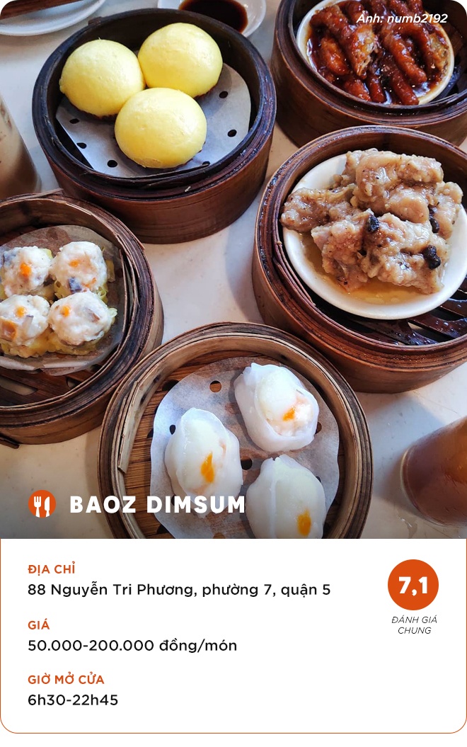 Món ăn: Bánh bao kim sa, mì hoành thánh, hủ tiếu xào hải sản, phi lê cá mú hấp Hong Kong...