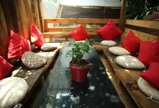 Tượng (Thành Thái, quận 10): Được thiết kế bởi những kiến trúc sư vững tay nghề, nên dù chỉ sử dụng những vật liệu đơn giản nhất như bộ bàn ghế gỗ mộc, giấy báo, bánh xe cũ, hoa, đèn… quán vẫn lôi cuốn những người trong nghề hay những ai vô tình đến quán.