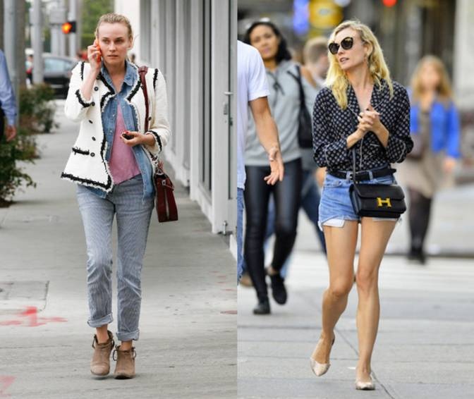 Người mẫu, diễn viên Đức - Diane Kruger nổi tiếng toàn thế giới với phong cách thời trang đường phố sành điệu. Khi dạo phố, cô thường chọn áo ba lỗ đơn giản kết hợp với váy hoa ấn tượng hay jeans rộng. Để thay đổi, cô cũng thích mặc jeans bó, áo ba lỗ cùng túi xách to bản. |