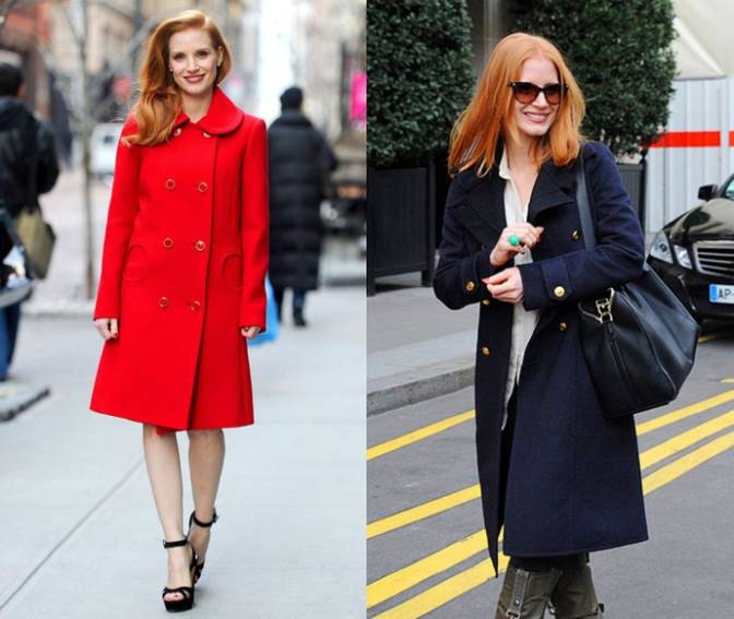 Ở Jessica Chastain toát lên một vẻ sành điệu mà hiếm ngôi sao Hollywood nào có được. Người hâm mộ hay bắt gặp cô giản dị diện áo khoác dài với giày cao gót đen thanh lịch. Với trang phục đường phố, Jessica thường kết hợp jeans xám, áo khoác đen và kính râm to bản. |