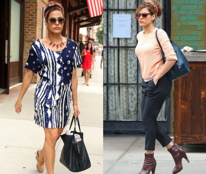 Là một trong những mỹ nhân hấp dẫn nhất Hollywood, Eva Mendes thường chọn đồ rất táo bạo với những gam màu sáng, sặc sỡ. Cô thích mặc váy hoa vào mùa hè mix cùng giày đế xuồng xinh xắn. Vào mùa đông, vợ tài tử Ryan Gosling thường diện áo choàng to bản có đai và boots cao cổ. |