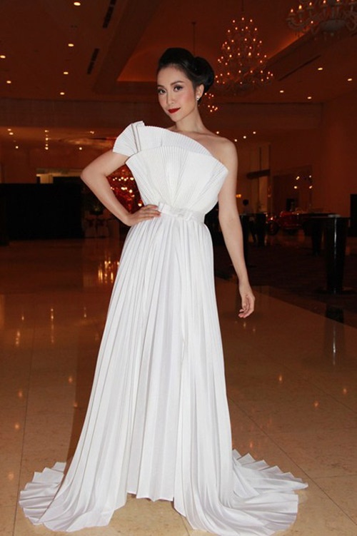 | Thường xuyên lựa chọn trang phục của các nhà thiết kế trong nước nhưng phong cách của Linh Nga không hề bị lép vé trước một "yêu nữ hàng hiệu" nào. |