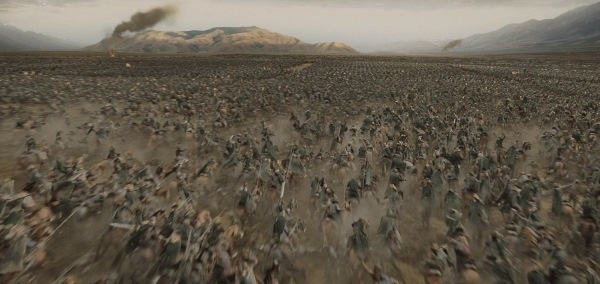 Chỉ trong gần 30 phút mà đã có đến gần 5 binh đoàn xuất hiện cùng các nhân vật chính của toàn bộ hội đồng hành và vua phù thủy xứ Angmar. Nhạc chiến trận hào hùng, từng đoàn binh tiến lên dưới ánh bình minh và những câu nói của các chiến hữu khi khi giờ phút sinh tử cận kề tất cả hợp lại thành một thiên anh hùng ca hoàn hảo.