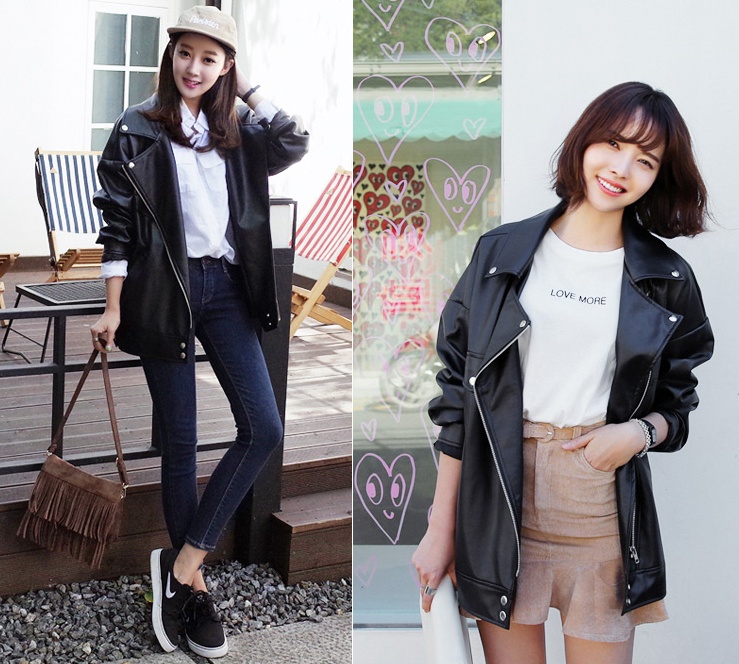 | Với một chiếc áo jacket da màu đen, bạn có thể phối với rất nhiều trang phục khác nhau, từ quần jeans cho đến váy. |