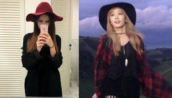 | Mũ rộng vành: Cô nàng LE của EXID và Tae Yeon của SNSD chọn chung một style là mũ rộng vành với sự kết hợp của "bộ đôi kinh điển" đỏ - đen. |