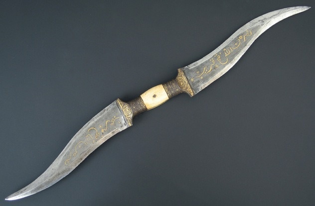 Haladie là một trong những vũ khí thú vị và đáng sợ nhất đến từ Ấn Độ. Các chiến binh Rajput sử dụng loại dao này để đâm hoặc chém kẻ thù. Haladie có hai lưỡi, được nối với nhau ở giữa bằng tay cầm. Một vài loại còn trang bị cán kim loại cùng đinh nhọn, tạo nên vũ khí 3 lưỡi khủng khiếp. Những chiến binh Ấn Độ chứng tỏ mình là những đối thủ đáng sợ khi họ trang bị cùng lúc Haladie và thanh kiếm nổi tiếng Khanda. |