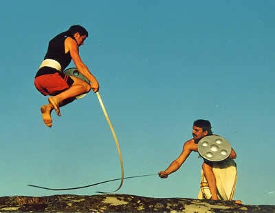 Atlatl là vũ khí dạng tên thời kỳ đồ đá, tiền thân của cung sau này. Trong khi lao chỉ có thể ném với tốc độ và khoảng cách giới hạn, atlatl có thể phóng tên với vận tốc 160 km/h. Đây là vũ khí khá thô sơ, chỉ bao gồm một thanh gậy với tên gắn ở đầu. Tuy đơn giản, atlatl nguy hiểm đến nỗi người ta đặt ra giả thuyết chúng là một trong những nguyên nhân dẫn tới sự tuyệt chủng của voi mammoth. Atlatl và các mũi tên thường được làm từ các loại gỗ dẻo. Cả hai bộ phận sẽ cùng uốn cong khi bắn để các mũi tên có thể phóng với vận tốc cực lớn. Atlatl được dùng khá phổ biến, người Aztec sử dụng chúng đến tận thế kỷ 16. |