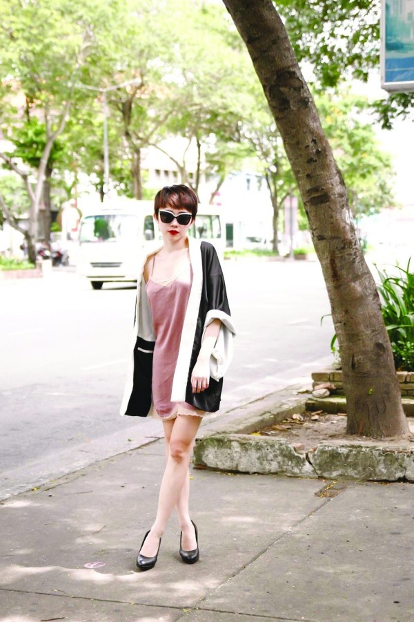 Slip dress: Với chiếc váy lấy cảm hứng từ váy ngủ này, bạn nên kết hợp cùng blazer, áo khoác như ca sĩ Tóc Tiên. Không nên chỉ diện mỗi slip dress xuống phố vì dễ khiến bản thân trông xuề xòa.