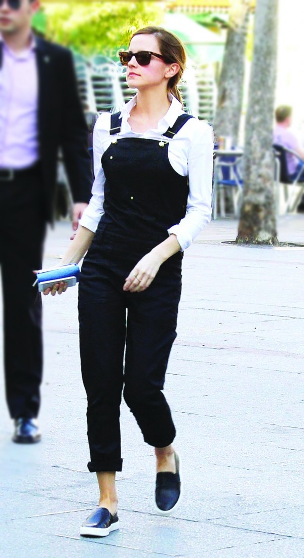 Quần yếm: Thiết kế mang dấn ấn thập niên 1990 đã trở lại. Trang phục này thích hợp với phái đẹp năng động, cá tính như Emma Watson. Có thể diện quần yếm đến công sở bằng cách kết hợp với áo sơ-mi dài tay. Khi dạo phố, áo T-shirt, crop top và giày đế bệt sẽ là “combo” hoàn hảo cho bạn gái nổi bật.