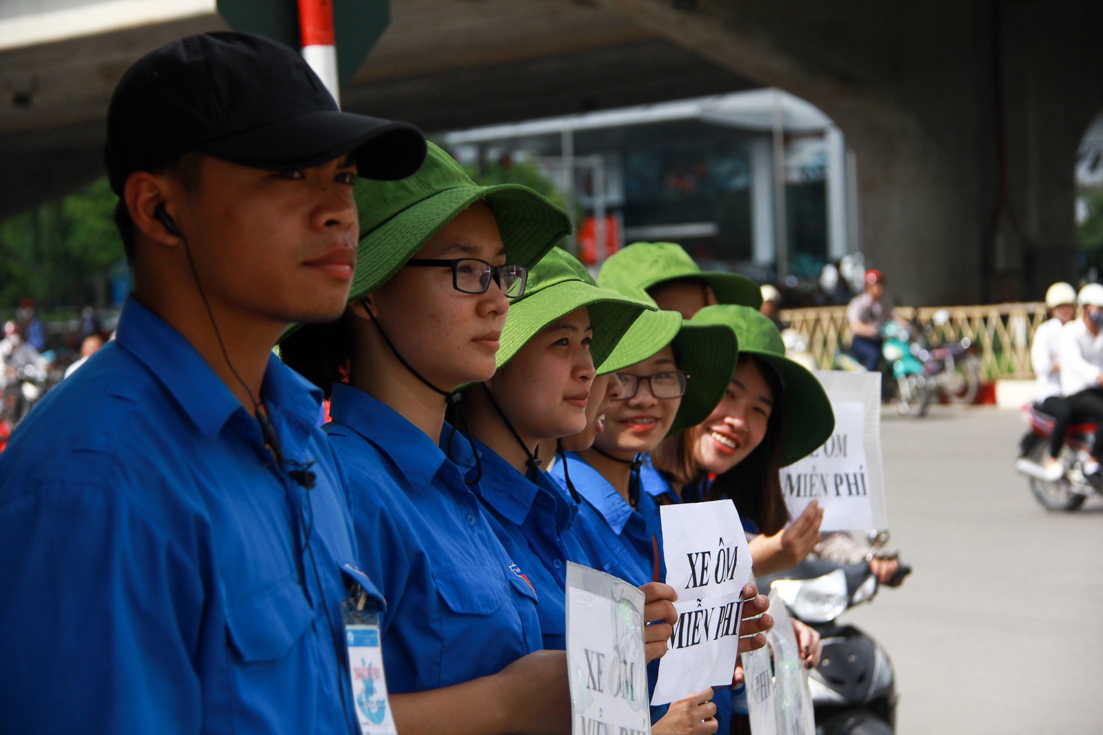 Bạn Bùi Anh Tú cựu sinh viên đại học Thương mại, trưởng nhóm sinh viên tình nguyện lưu động miền Bắc chia sẻ: “Xe ôm miễn phí là chương trình mà chúng tôi đã ấp ủ từ mấy năm trước, đến mùa thi cao đẳng, đại học năm nay mới có đủ điều kiện thực hiện. Nhóm chúng tôi bắt đầu thí điểm trong hai ngày 1-2/7 tại bến xe Mỹ Đình”.