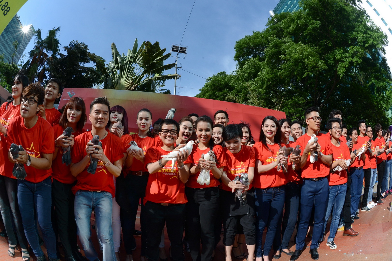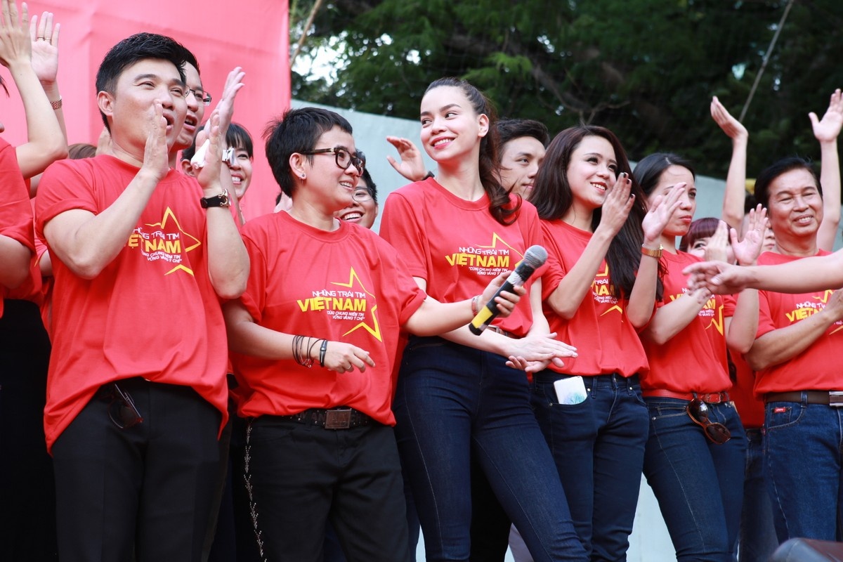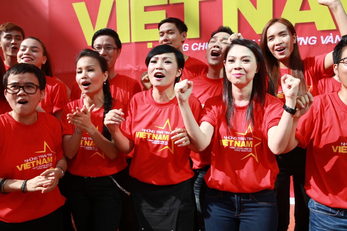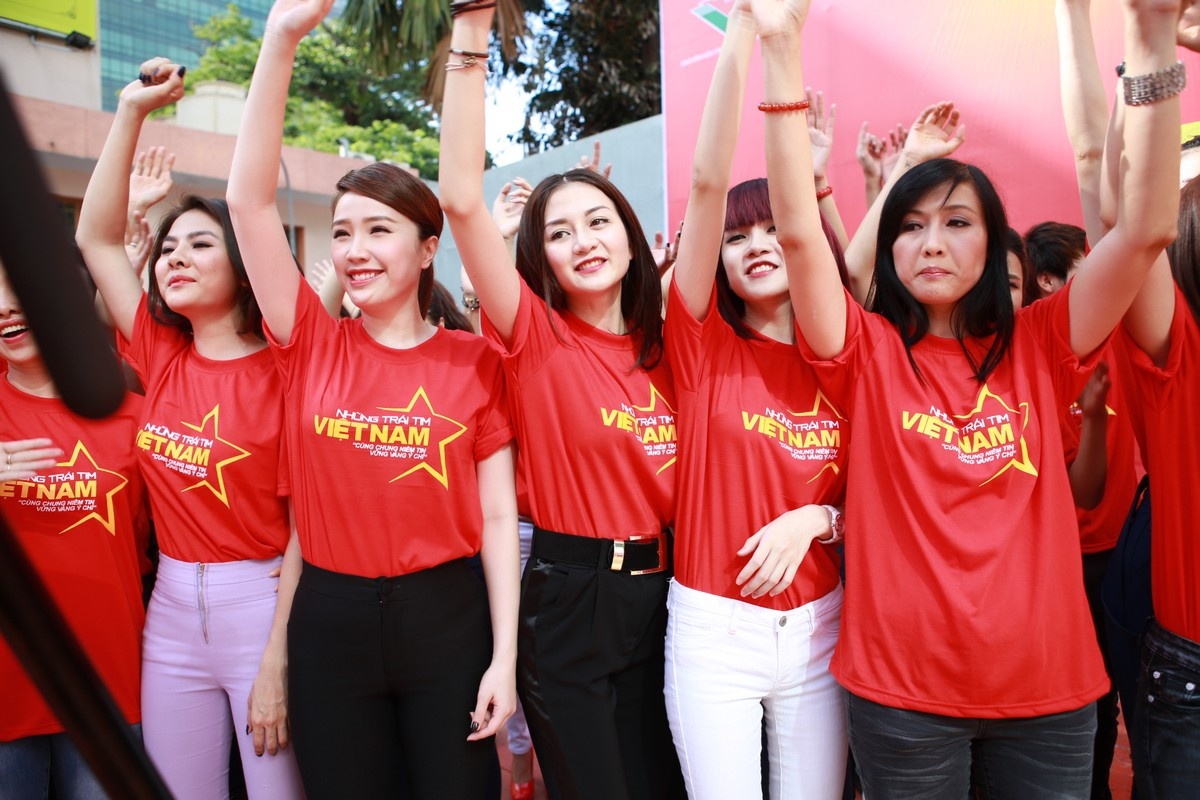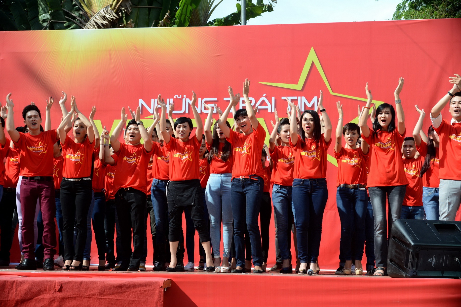 | Cuối tháng 5 vừa qua, gần 100 nghệ sĩ Việt đã cùng nhau tham gia buổi ghi hình cho MV này. |