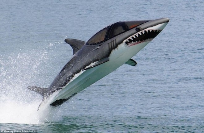| Được chế lại từ những chiến đấu cơ cũ, mỗi con cá mập sắt có giá 40.000 bảng Anh (tương đương 1,38 tỷ đồng). Chúng có khả năng lướt sóng với tốc độ 75 km/h. Ảnh: Mercury Press |
