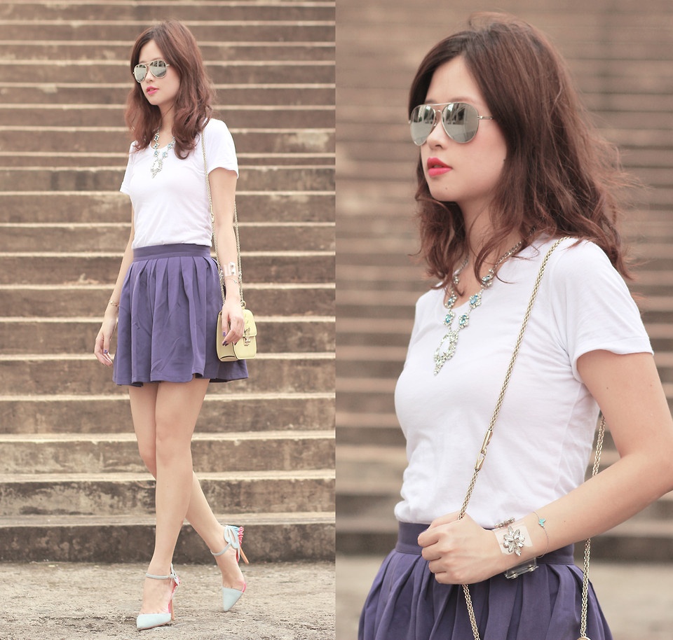 | Trẻ trung xuống phố với áo thun và chân váy xòe duyên dáng. |