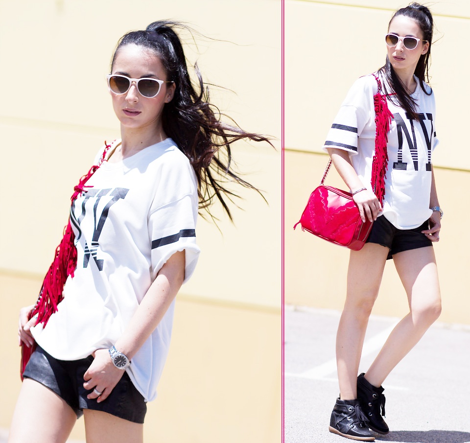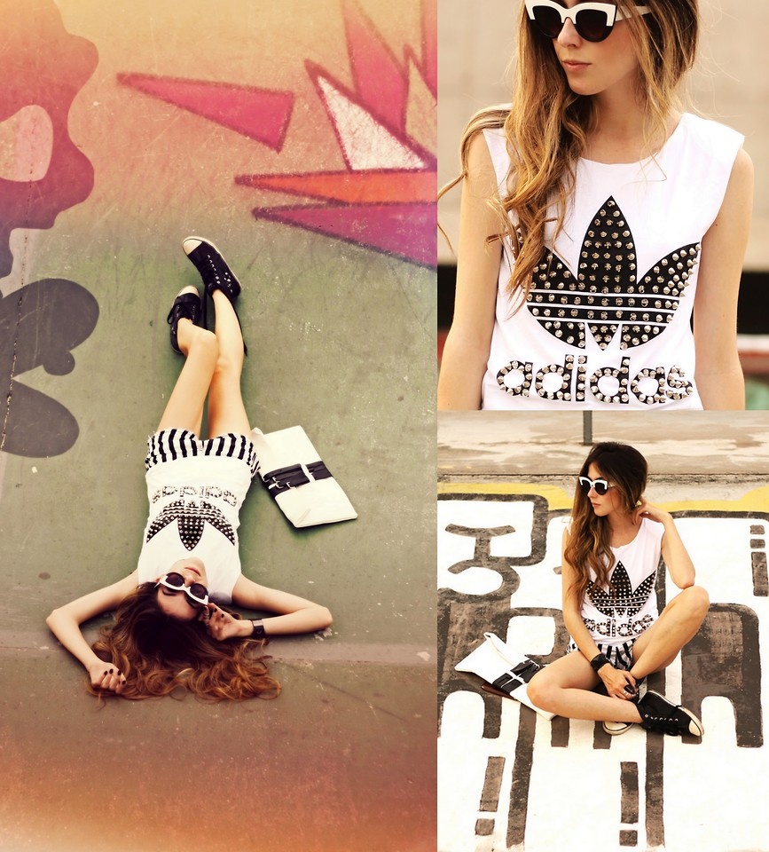 | Phong cách năng động với quần xắn gấu và chiếc áo thun dáng rộng. |