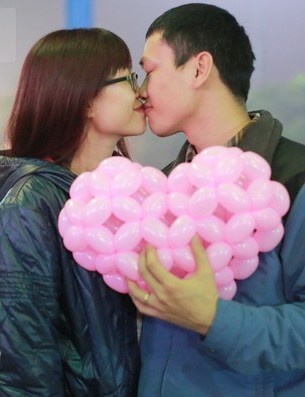 | Kiểu hôn độc đáo của một cặp đôi trẻ: bạn nam bịt mắt và cõng bạn nữ. Trong khi đó, cả hai trao nhau nụ hôn đầy cảm xúc. |