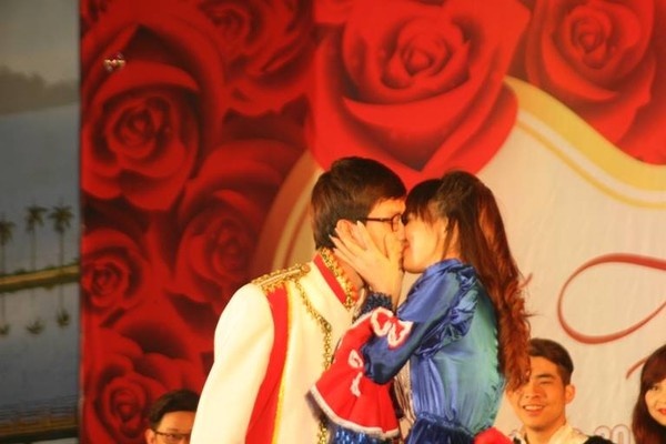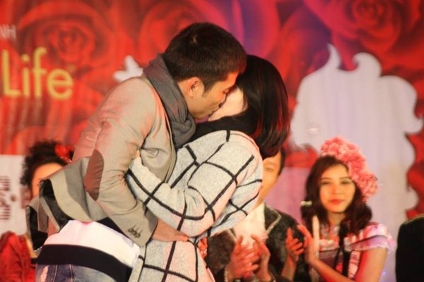 | Nụ hôn có phần ngại ngùng nhưng rất dễ thương của hai bạn trẻ. |