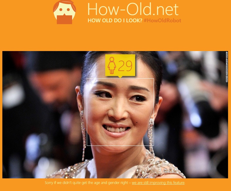 | Với một bức ảnh không phải đẹp nhất, Củng Lợi vẫn được How old do I look của Microsoft bớt đi đến 20 tuổi. |