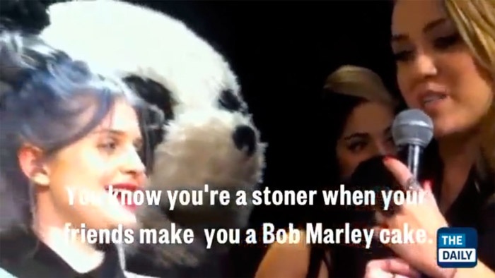 Tự nhận là "kẻ nghiện" - 2011 Sinh nhật của Miley Cyrus luôn tràn đầy không khí nghiện ngập. Nếu như năm 18 tuổi là salvia thì năm 19 tuổi, cô nàng nhận được một chiếc bánh hình Bob Marley - người nghệ sĩ vẫn được coi là biểu tượng của cần sa. Trong một clip ghi lại buổi sinh nhật, Miley Cyrus cũng tự nhận mình là "kẻ nghiện": "Bạn biết bạn là người thích phê pha khi bạn bè tặng cho bạn một chiếc bánh Bob Marley". |