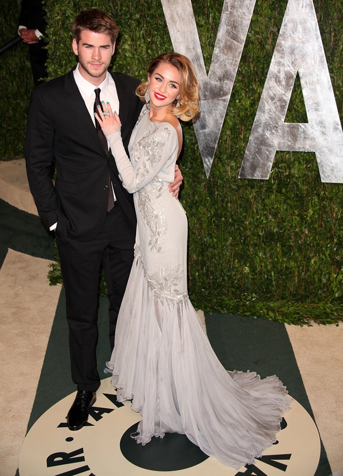 Đính hôn năm 19 tuổi - 2012 Năm 2012, Miley Cyrus thông báo mình đã đính hôn với chàng tài tử điển trai Liam Hemsworth bằng dòng status "Cuộc đời tươi đẹp" trên blog. Cặp đôi này đã trải qua hàng loạt lần chia tay rồi quay lại kể từ khi gặp và yêu nhau trên phim trường The Last Song năm 2009. |