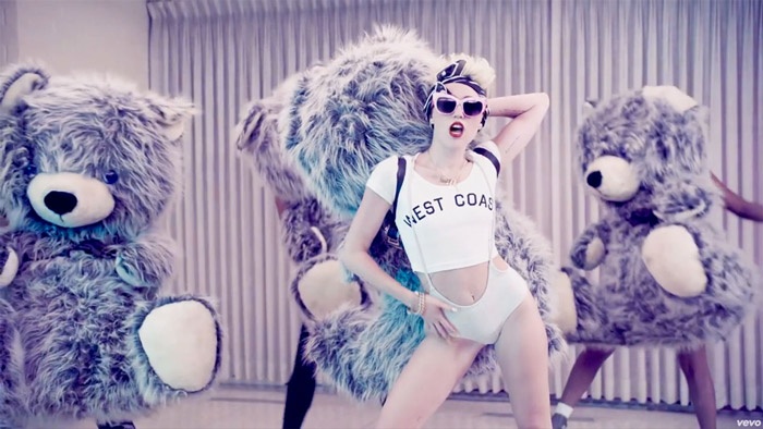 Video ca khúc We Can't Stop - 2013 We Can't Stop có đầy đủ các yếu tố khiến không ít người xem phải "đỏ mặt", từ sexy, khiêu gợi cho đến những trò nổi loạn, điên rồ. Sau Rihanna, Miley Cyrus như đang chứng tỏ cho mọi người thấy cô là "gái hư" đích thực. |