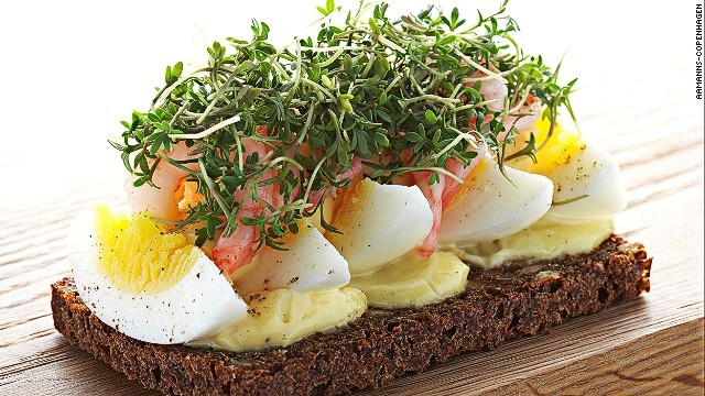 Smorrebrod là loại sandwich truyền thống của Đan Mạch. Người ta phết một lớp bơ dày lên bề mặt của lớp bánh mỳ được làm từ lúa mạch đen. Kết hợp thêm cá hồi hun khói, thịt bò nướng, hải sản hoặc trứng luộc, một chút nước sốt với cà chua, dưa chuột và rau đắng để tạo nên một thứ bánh ngon tuyệt hảo.