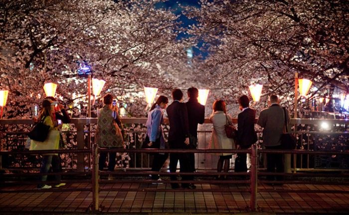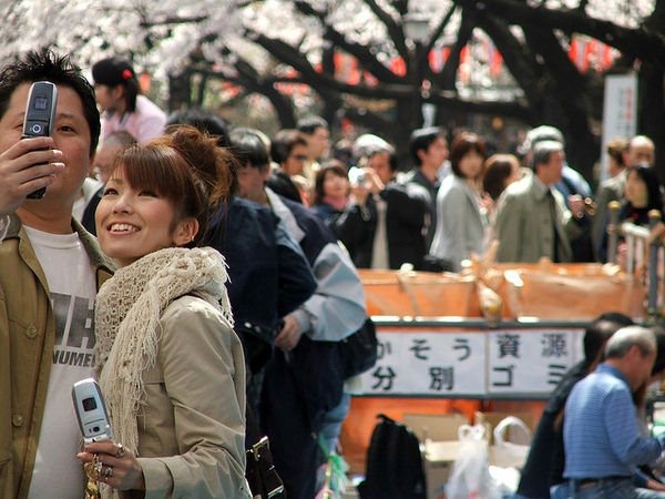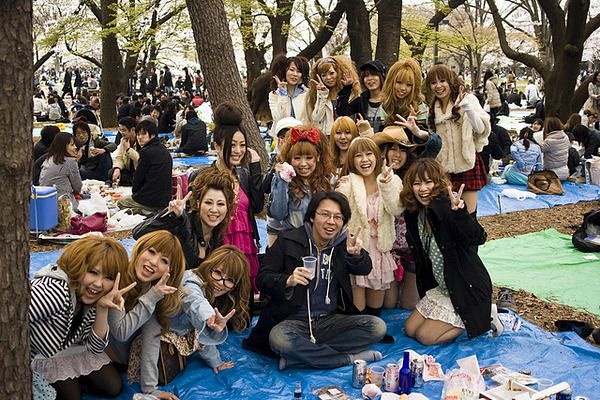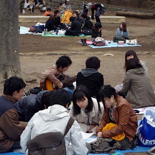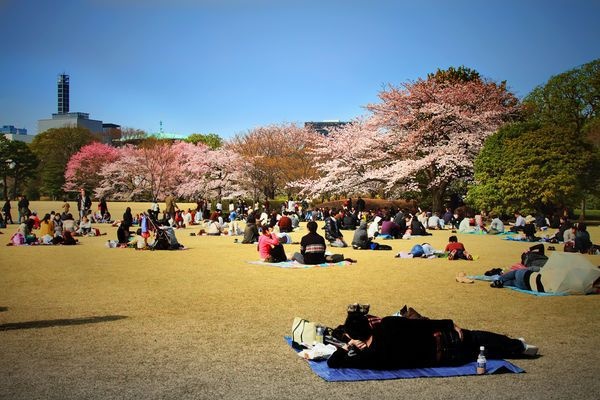 Thông thường mọi người thường đi cùng bạn bè và gia đình tới các công viên, họ trải những tấm thảm nhựa màu xanh ra nằm ngắm những bông hoa anh đào đẹp tuyệt vời ở trên cao.