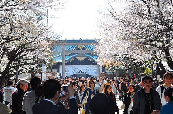 Ngôi đền gây tranh cãi Yasukuni có khoảng 600 cây hoa anh đào. Ngôi đền thờ là nơi tổ chức lễ hội Sakura, với sự tham dự của 200 đô vật Sumo chuyên nghiệp. Địa điểm này là nơi linh thiêng nên cũng không có các hoạt động hội hè ồn ào.