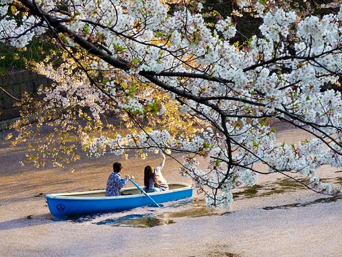 1. Kênh Chidori-ga-fuchiHàng trăm cây hoa anh đào nằm dọc theo bờ kênh Chidorigafuchi của Imperial Palace nở khoe sắc mỗi độ mùa hoa về. Bạn có thể đi bộ, hoặc thuê một chiếc thuyền đề đi dọc theo con kênh để ngắm nhìn hoa. Vào dịp cuối mùa, nước của những con kênh được bao phủ những cánh hoa sakura trông rất đẹp.