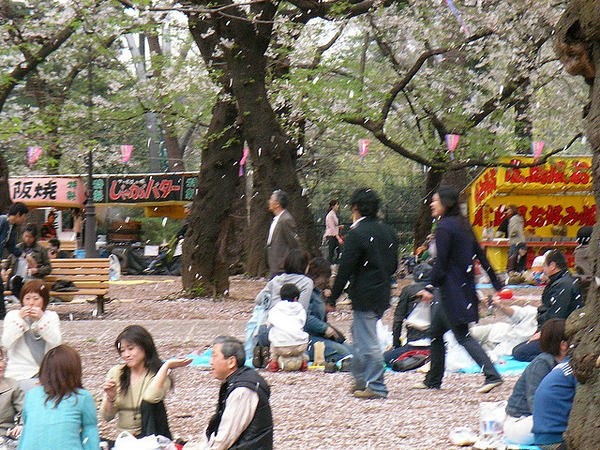 Nếu bạn muốn tới một nơi đông đúc bạn nên tới công viên Ueno Park, nơi thường xuyên có những bữa tiệc Hanami lớn. Diện tích công viên khoảng 133 mẫu Anh và có khoảng 1000 cây hoa anh đào, điểm nhấn chính là một đại lộ bao quanh Shinobazu Pond. Sakura Ueno Park là điểm hoa nở sớm (thường là điểm hoa nở đầu tiên ở Tokyo).
