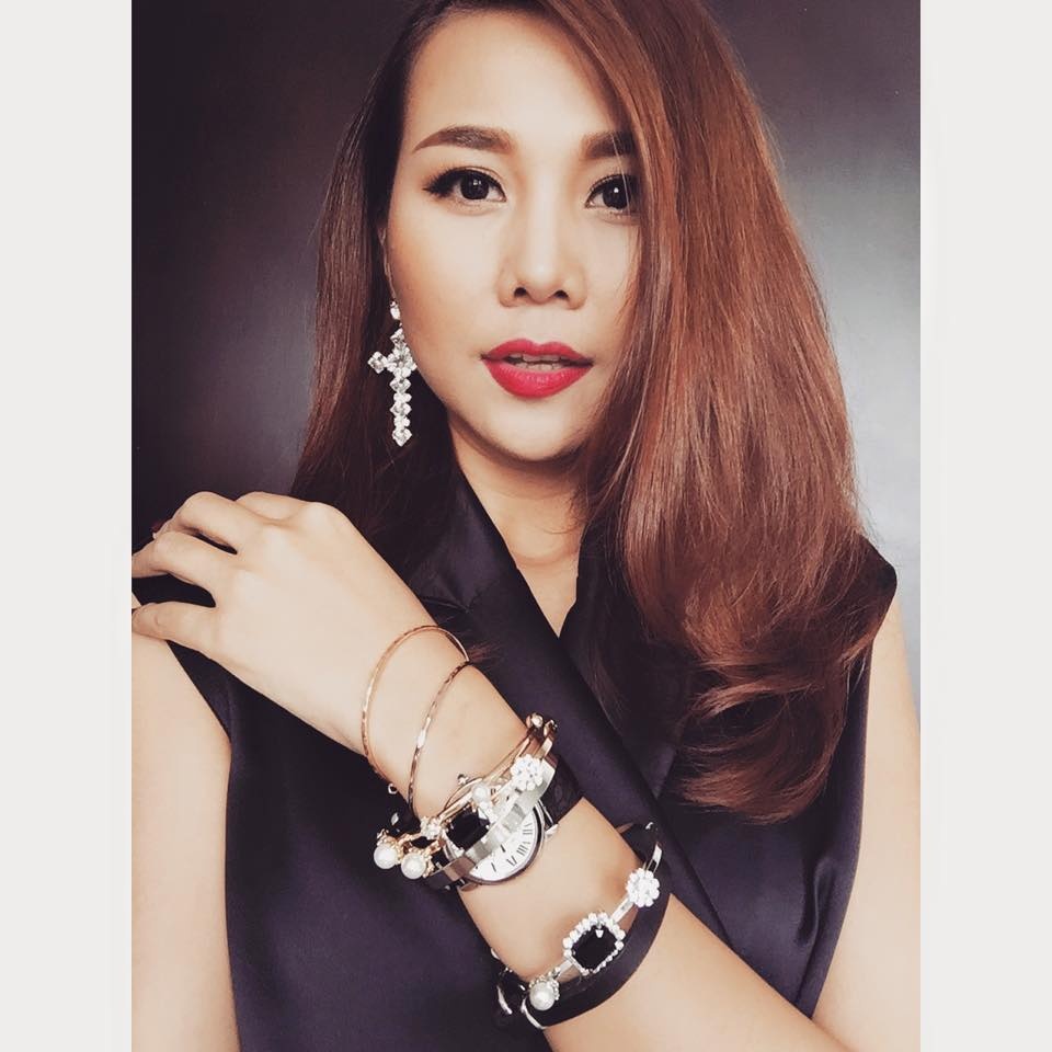 Tóc uốn đuôi rẽ lệch nhẹ nhàng giúp tôn thêm vẻ đẹp của gương mặt Thanh Hằng.