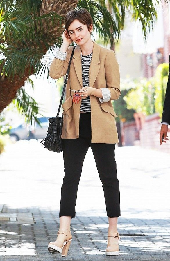 | 3. Quần lửng: Nghe có vẻ lạ nhưng những mẫu quần trên mắt cá như của Lily Collins có xu hướng làm chân và hông to hơn. |
