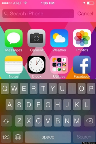 Với iOS 7, bạn có thể tìm kiếm bất cứ thứ gì trên iPhone bằng tính năng Spotlight. Tất cả những gì bạn phải làm là vuốt từ trên đỉnh màn hình và nhập từ khóa. Tuy khá thuận tiện, Spotlight khiến pin hao đi nhanh chóng.