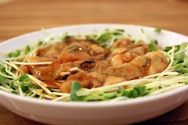 Hàu sốt Mexico: hàu sống được ăn kèm hỗn hợp sốt Mexico và rau mầm. |